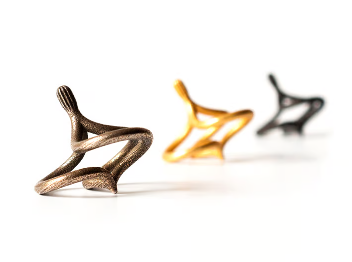 The Ghost Spinning Top is available in a variety of metals and creates a unique semi-transparent outline of a top when played with. The unique geometry of the Ghost also allows the 3D printed toy to spin for up to 1.5 minutes.