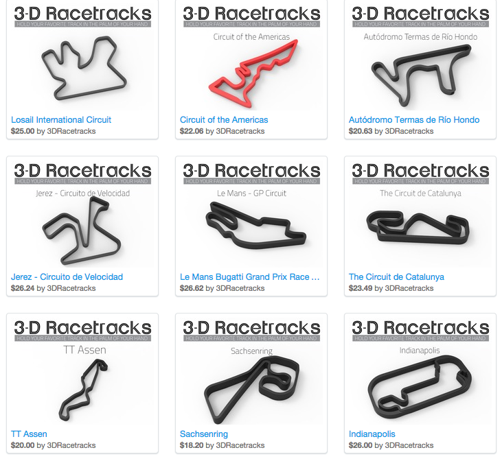 After that I decided I wanted to make something REALLY different and it just so happened that when I did I was glancing at an article on the new (at the time) Circuit of the Americas in Texas. I was admiring the elevation changes and that’s when it hit me – no one had ever done topographic models before, only outlines. Topographic models would be sort of hard to make traditionally, but 3D printing is kind of perfect for making them. That’s when I started hunting for elevation data and experimenting with designs!