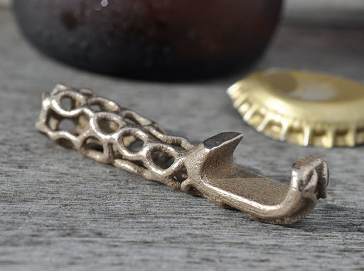 Why have a normal, plain bottle opener when you could have a 3D printed cast metal bottle Voronoi Pocket Bottle Opener by designer Shapespeare that also lifts can tabs for you? While cast metals are not as strong as our stainless steel option, they are metal, and can open your beer bottles, no problem. Fun fact: The pattern that you see so often on 3D printed objects is called the Voronoi pattern, and while I could not explain the mathematical concept to you, 3D modeling programs such as Autodesk Fusion 360 have made it simple for you to apply it to your own designs.