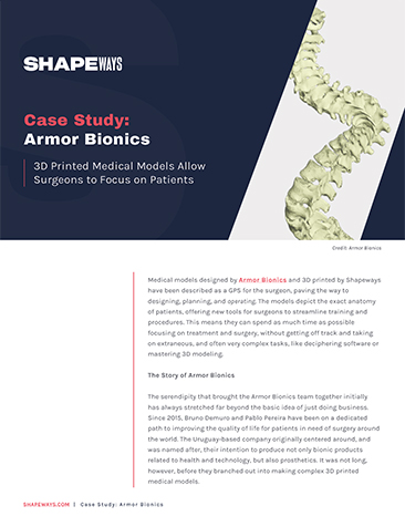 Armor Bionics creates 3D designs of highly accurate medical models and relies on Shapeways for expertise in 3D printingâalong with the need to improve accessibility and scalability for their business.