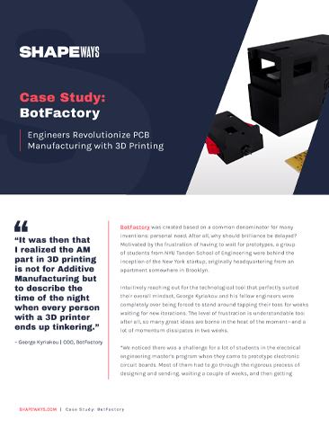Why it was so important for BotFactory to begin delegating industrial 3D printing to Shapeways.