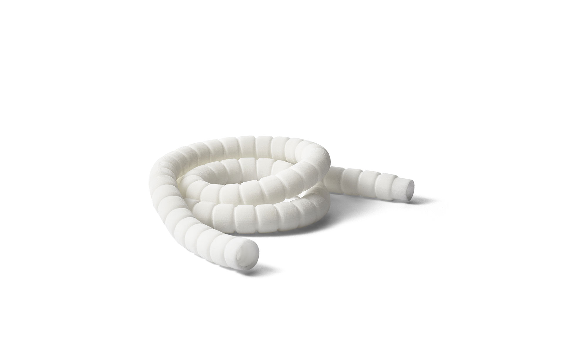 Shapeways 3D prints TPU via both Multi Jet Fusion (MJF) and Selective Laser Sintering (SLS) technologies, offering multiple benefits over other elastomers. Resistance is at the top of the list for production of durable parts meant to stand the test of time. TPU is highly resistant to impact and wear and tear, but also offers excellent abrasion-resistance–a critical property for mechanical parts that are expected to withstand years of friction as parts rub against each other during use and can begin to degrade. The ability to resist chemicals, along with oils and solvents, and harsh weather and heat, also makes TPU an excellent choice for 3D printing and subsequent industrial use.