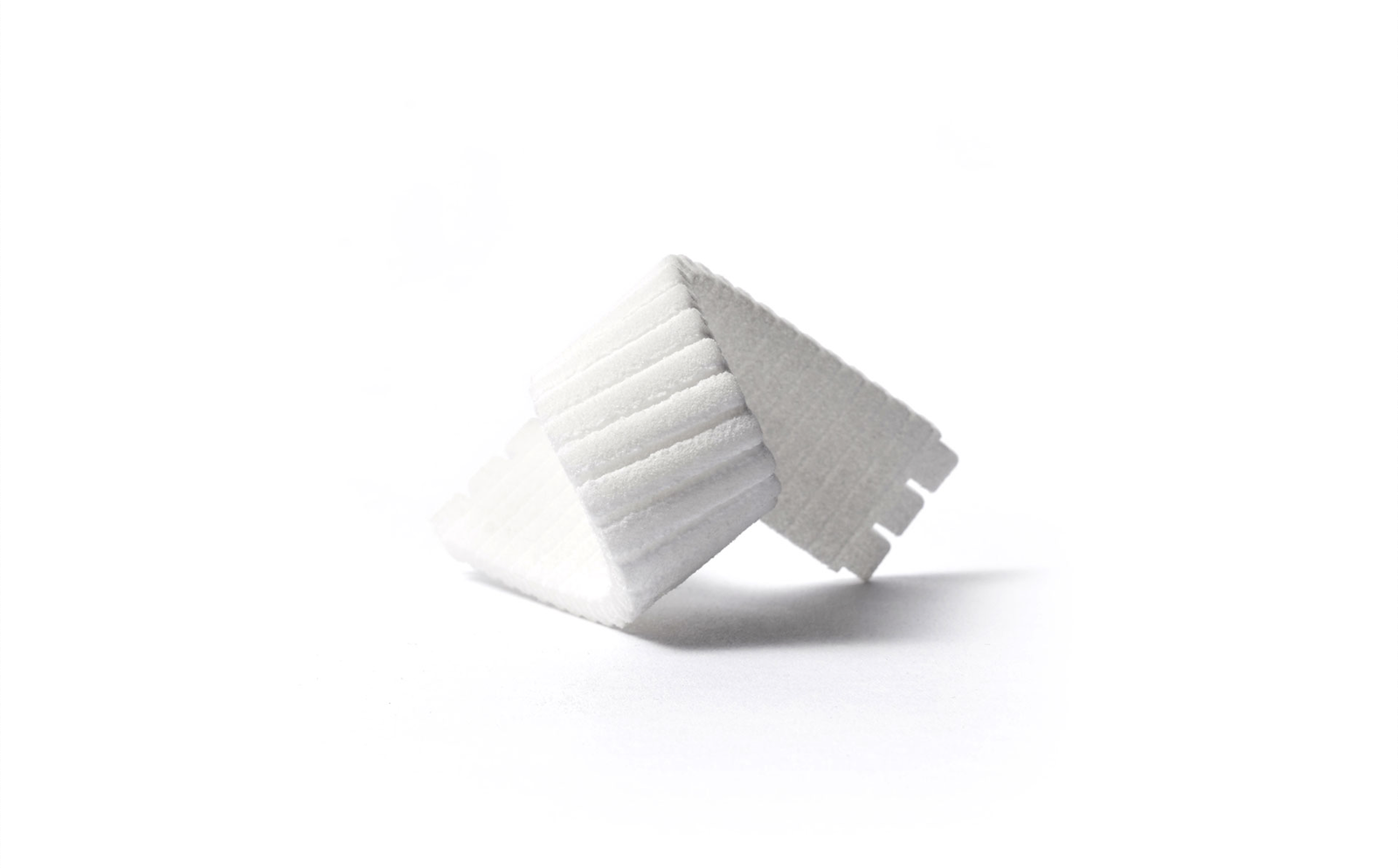 Shapeways offers Multi Jet Fusion (MJF) for 3D printing Ultrasint® TPU 01, resulting in prototypes and parts that are robust, with strong mechanical properties. Like SLS 3D printing, MJF is powder-based; however, it does not rely on laser heat to melt layers together. Instead, one layer of powder is deposited after the other, 80 microns at a time, with an inkjet array moving back and forth jetting out fusing agents to fuse the powder particles together, and detailing agents to assure good detail and smooth surface texture.