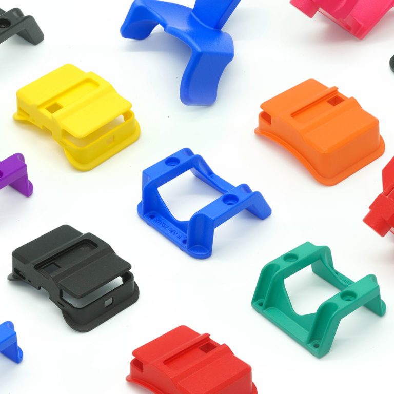 Multi Jet Fusion (MJF) begins with a thin layer of powdered material being deposited across the build platform. Droplets of fusing and detailing agents are applied along with thermal energy on top of the powdered material to define the part’s geometry.