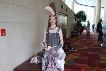 Alicia Davis from Franklin, Indiana handmade her cosplay while also being a stay-at-home mom. I was absolutely blown away by the incredible detail incorporated in every part of her outfit, literally from the steampunk gears and feather headdress to her Victorian-inspired footwear.