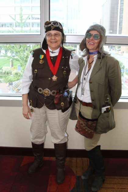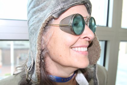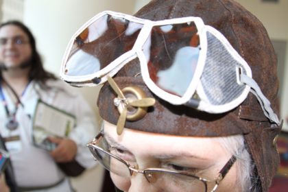 We ran into two sisters who were impeccably dressed like pilots, even pulling in some very authentic accessories for the looks. Beth Sanders is wearing ski goggles from the 1930s and proudly announced she was 65 years old (damn girl, what’s your secret?). Her sister Merry Sanders Mayer was wearing 1920s mountaineering goggles.