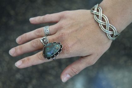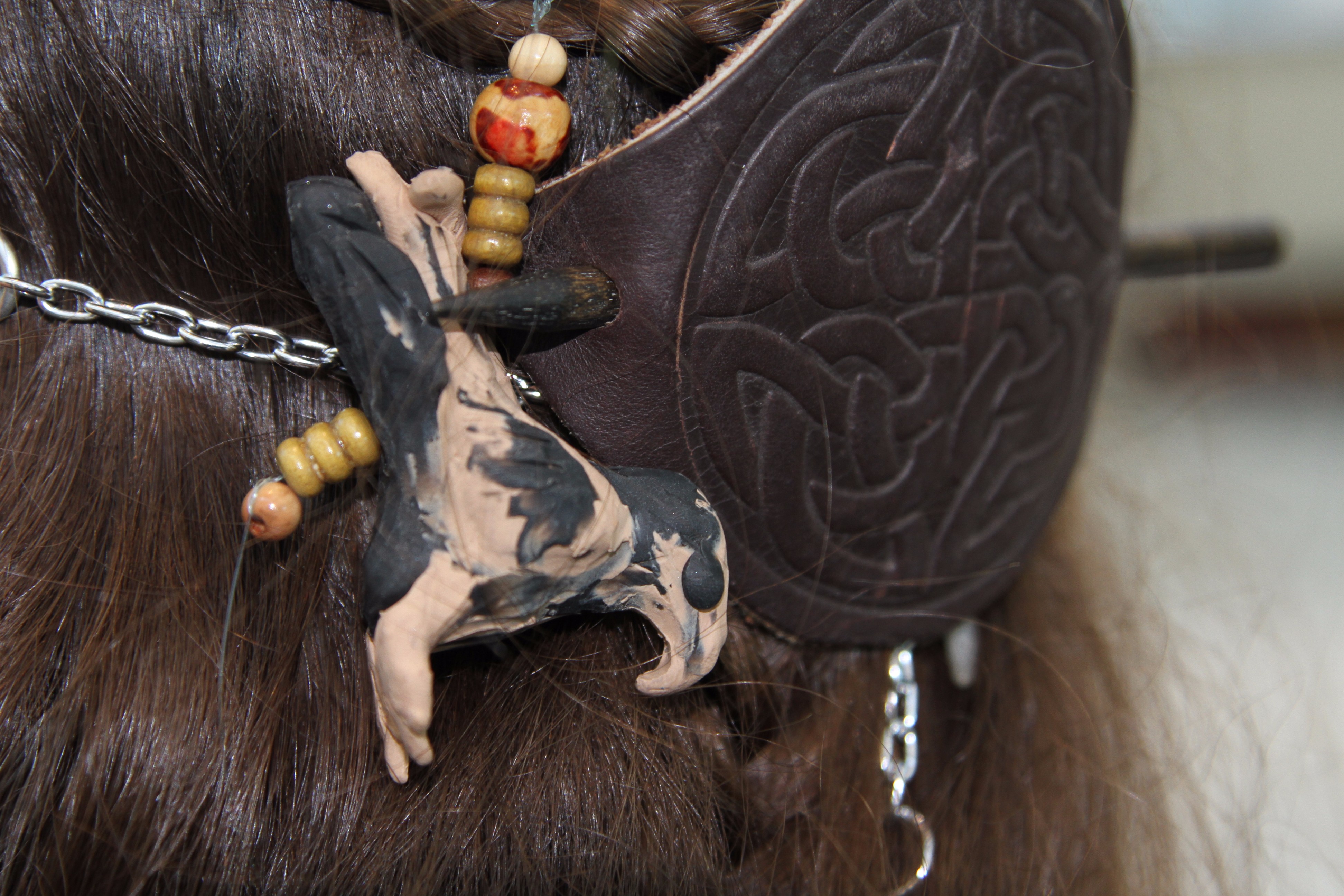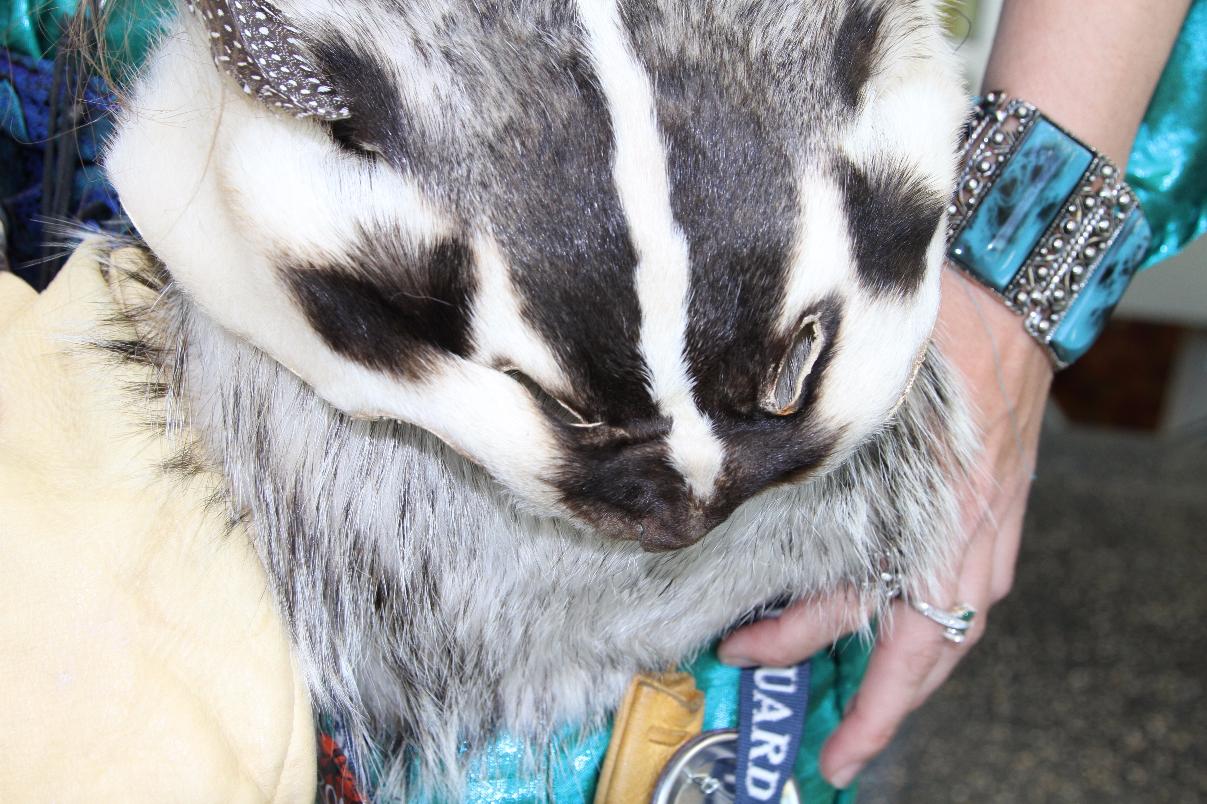 Morgan Marble is from Beaverton, Michigan and is wearing a badger pelt. Her accessories are an eclectic mix of handmade and carefully curated bits and bobs.