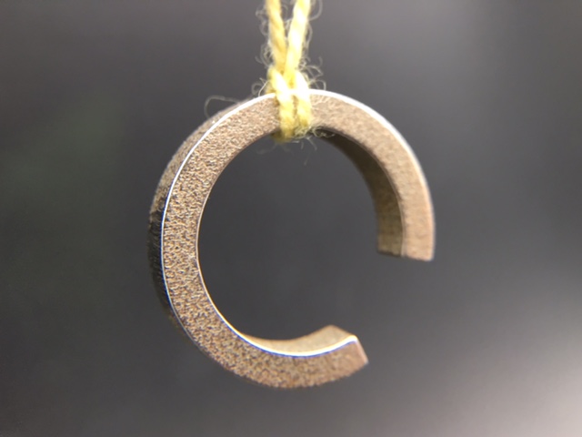 But meaning is what you make it, and also to a large extent what you name it; my goal was to create simple, strong pieces that evoked difficult feelings, and give them evocative names to help reinforce that meaning. Here’s the one I like best so far; it’s called LOSS, and it represents what happens when things break and the center falls out. It’s nice to hold on to and feel the gap, maybe try to close it up with your finger, or put your finger through the arc: