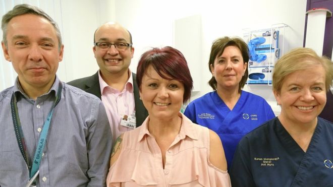 3D printed jaw implant recipient Debbie Hawkins and her medical team (image via ABM Health Board)