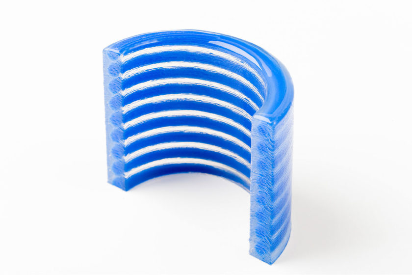 A piece of multi-material 3D printed silicone (Photo: ACEO®; Wacker Chemie AG)