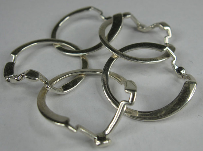 Indeed, what you’re looking at is one ring, designed by Oskar Puzzles. These interlocking parts all fit, stacked and snug, as one ring, and they were printed together as one piece. Certain cast metals, such as brass, are fantastic for printing interlocking parts. Which means you can print moving parts of a machine — or puzzle rings!