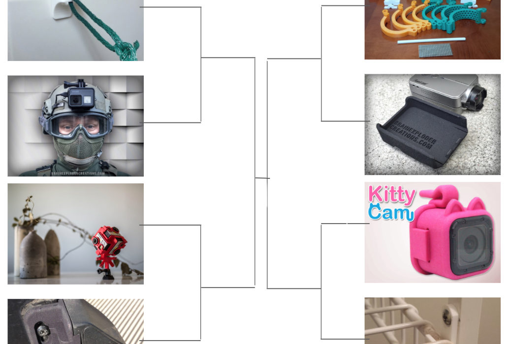 First round, we have the ‘Wall Support Bracket’ vs. the ‘Helmet Mount GoPro for HERO 5/6.’ The GoPro mount is a seasoned veteran of the Shapeways March Madness Bracket Brackets, but don’t take the ‘Wall Support Bracket’ lightly, it’s very handy and is versatile enough to be fixed in place with a screw or even double sided tape.