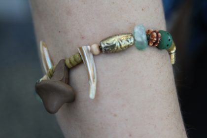 Morgan Marble is from Beaverton, Michigan and is wearing a badger pelt. Her accessories are an eclectic mix of handmade and carefully curated bits and bobs.